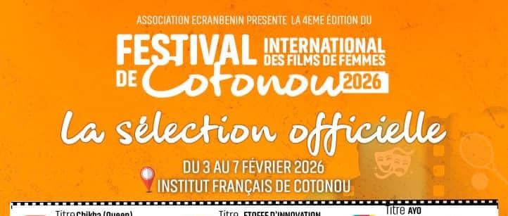 La 4ᵉ édition du Festival International des Films de Femmes de Cotonou (FIFF), organisée par l’Association ÉcranBénin, se déroulera du 3 au 7 février 2026, avec les projections de la sélection officielle prévues les 4 et 5 février à l’Institut Français de Cotonou. Placé sous le thème « Femmes, libérez votre créativité », le festival propose 18 films venus d’Afrique et de sa diaspora, mêlant fictions et documentaires, et mettant en avant les luttes, espoirs et talents des réalisatrices africaines.