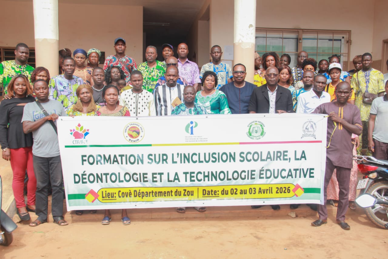 La commune de Covè, dans le département du Zou, a abrité, les 2 et 3 avril 2026, un atelier de renforcement des capacités des enseignants membres du Syndicat National des Enseignants des Écoles Maternelles du Bénin (SYNAEM-Bénin) et du Syndicat National de l’Enseignement Primaire Public du Bénin (SNEP-Bénin). Cet atelier est axé sur l’inclusion scolaire, la déontologie et les technologies éducatives. L’événement a connu la participation d’enseignants venus de différentes localités du département du Zou ainsi que d’invités de marque, notamment une délégation de la République sœur du Togo.