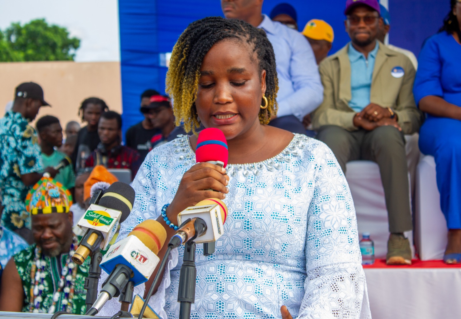 Au cours de cette cérémonie de lancement de la campagne, plusieurs personnalités se sont succédé au pupitre pour s’adresser aux populations venues de toutes les localités de la circonscription électorale. Parmi ces personnalités, on notait la présence remarquable de Viviane Savi, membre de la coordination de campagne du duo Wadani-Talata dans la 6e CE pour la présidentielle.